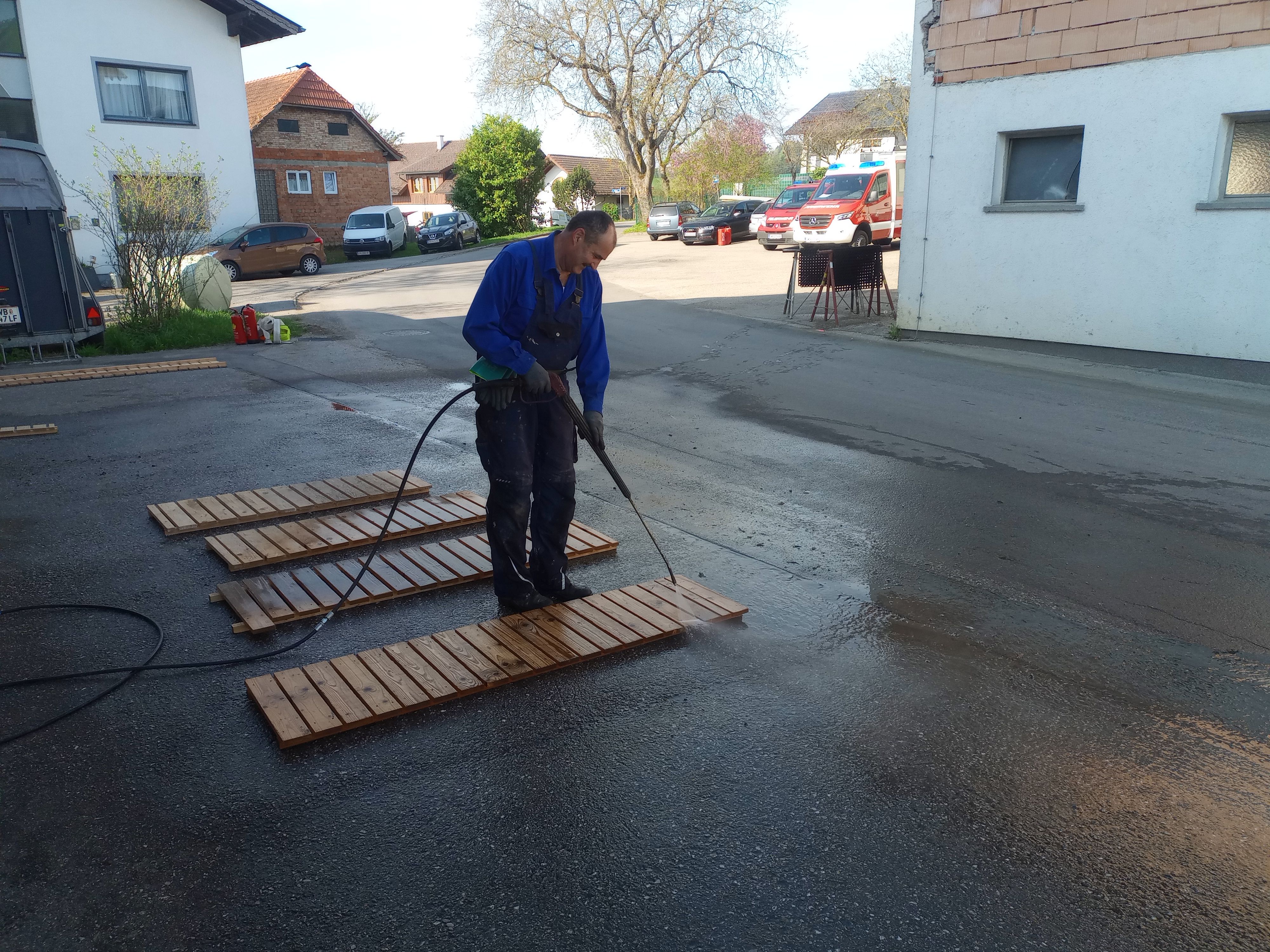 Am 18.4. fand der bereits traditionelle Zeughausputz statt. Das Feuerwehrhaus wurde gründlich gekehrt und geputzt. Ebenso wurden nicht mehr benötigte Gegenstände entsorgt. Als Dank für die fleißigen Helfer gab es einen gemeinsamen Imbiss in Mehmt's Imbißhütte.
