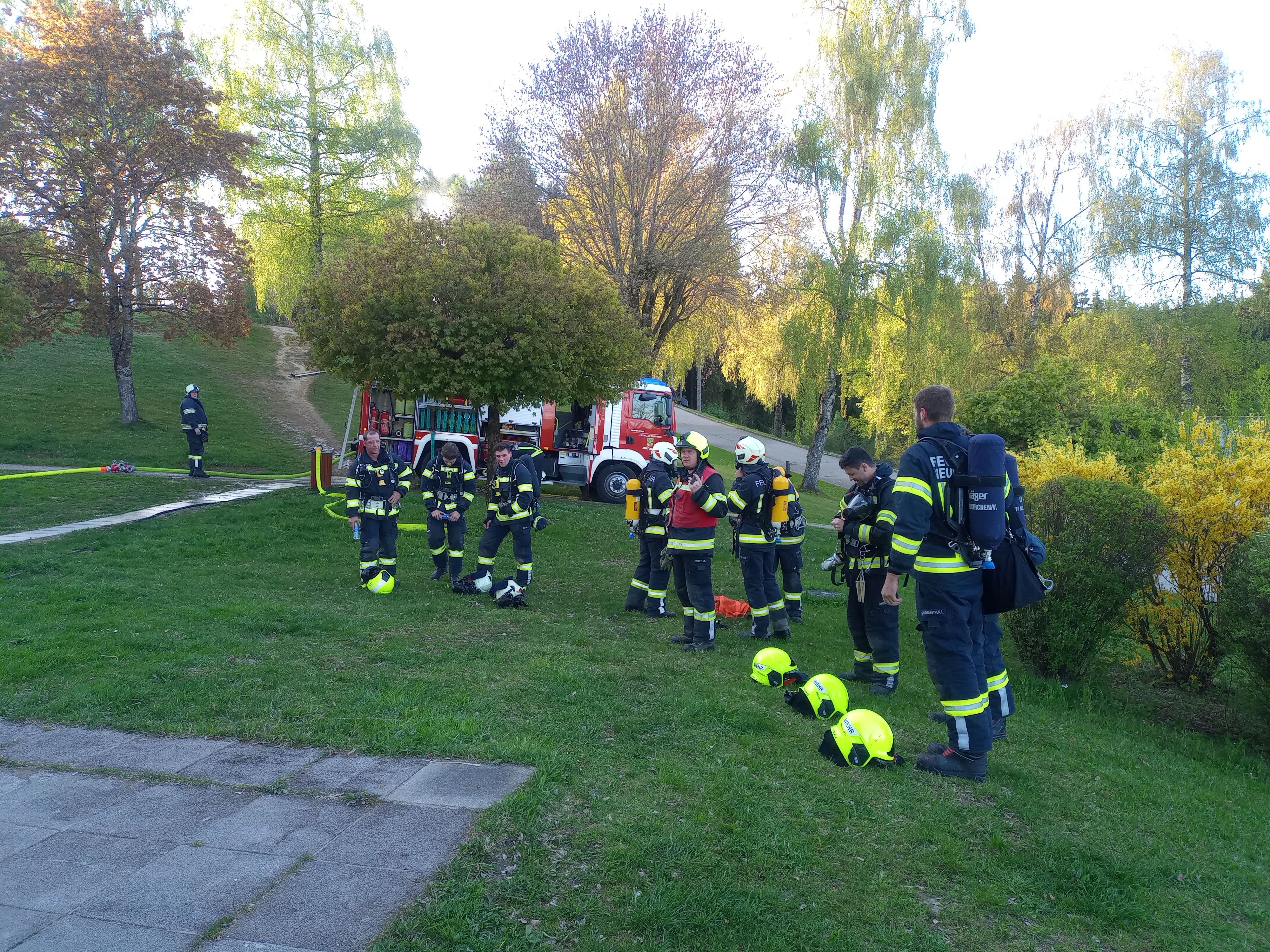 Die diesjährige Frühjahrsübung des Pflichtbereiches Ampflwang wurde durch die FF Schlagen ausgerichtet. Übungsannahme war ein Brand im Bettentrakt eines Hotelbetriebes. Ebenso waren mehrere Personen in einem Lift gefangen. 6 Atemschutztrupps führten die Evakuierung, Personensuche und Brandbekämpfung durch. Die Wasserversorgung erfolgte von Hydranten und 2 Naturteichen. Aufgrund der beengten Verhältnisse war eine Personenrettung über die Drehleiter nicht möglich. Unterstützt wurde der Einsatzleiter durch die "EFU Badstuben". Zum Abschluss bedankten sich Abschnittskommandant Schausberger, Bürgermeister Kienast und der Brandschutzbeauftragte des Hotels für die Durchführung der Übung.