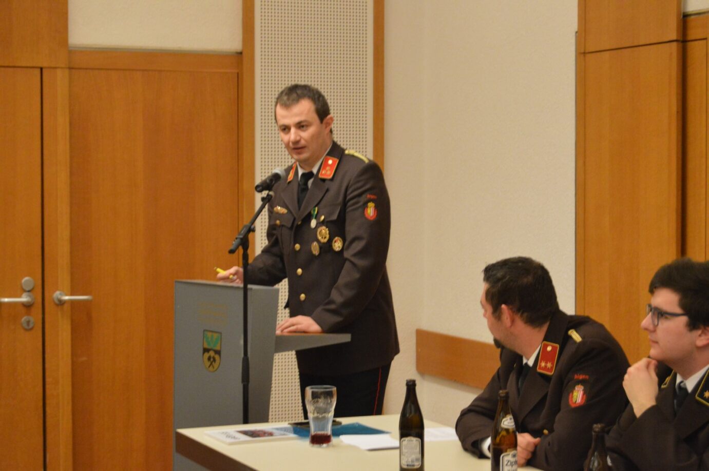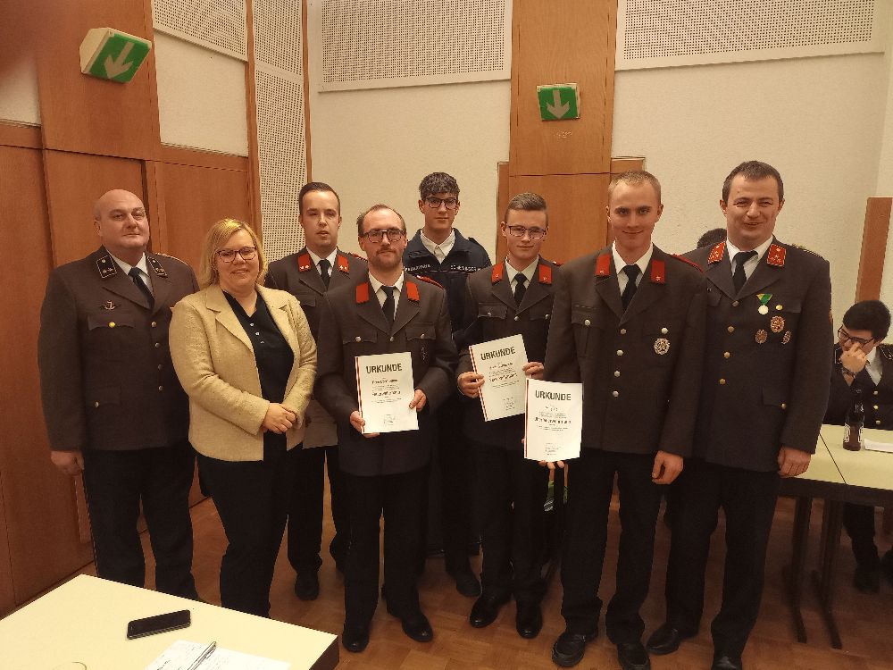 Bei der Vollversammlung konnte HBI Joachim Schendl zahlreiche Feuerwehrkameraden und Ehrengäste begrüßen. Im Jahr 2023 waren 5 Brand- und 24 technische Einsätze zu bewältigen. Besonders fordernd waren 3 Einsätze mit Todesopfern. Im abgelaufenen Jahr wurde auch das Branddienstleistungsabzeichen in den Stufen Bronze, Silber und Gold abgelegt. Die Jugendgruppe besteht aktuell aus 20 Mädchen und Burschen - hier konnten 3 neue Mitglieder begrüßt werden. Die Jugendgruppe konnte im abgelaufenen Jahr bei den Bewerben in der 1. Klasse mehrere Pokalränge erreichen. Erstmals war es auch möglich, mit 2 Jugendgruppen bei den Bewerben anzutreten. 2 Kameraden traten von der Jugend in den Aktivstand über. Neu angelobt wurden Moritz Casapiccola, Rene Oberhuemer und Nico Schierlinger. Ebenso gab es einige Beförderungen und Ehrungen für 25 und 50jährige Tätigkeit im Feuerwehrwesen. In Summe leistete die FF Aigen im Vorjahr 9.700 Stunden.