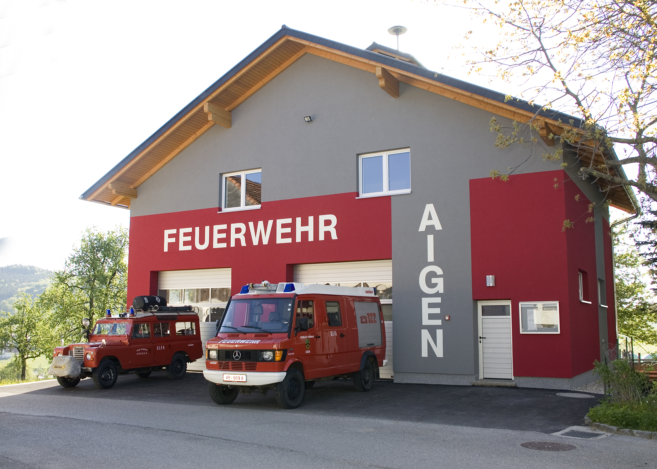 Kurz nach der Gründung der FF Aigen wurde im März 1928 der Beschluss gefasst, ein neues Feuerwehrdepot zu bauen. Herr Eitzinger August (Göbl) stellte den Grund kostenlos zur Verfügung. Bereits im August 1928 konnte das Feuerwehrhaus im Zuge des Gründungsfestes eingeweiht werden. Aufgrund des steigenden Platzbedarfes und der notwendigen Anforderungen wurde 1982 an der selben Stelle ein neues Feuerwehrhaus errichtet.