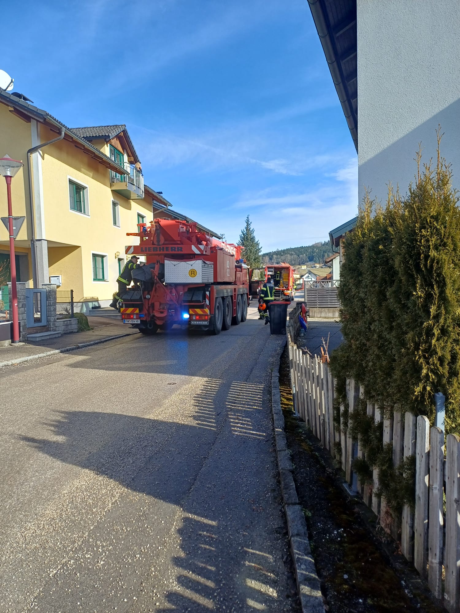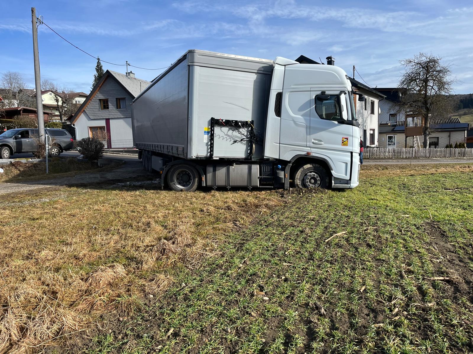 Um kurz nach 11 Uhr wurde die FF Aigen zu einer LKW-Bergung in der Siedlung alarmiert. Aufgrund der Lage wurde zeitgleich KRAN Vöcklabruck alarmiert. Ein Sattelzug hatte sein Ziel verfehlt und folgte dem Navi, über kleine Straßen umzudrehen. Bei einer 90 Grad Kurve in der Siedlung war Schluss. Er fuhr zum Reversieren in einen Schotterweg und blieb darin stecken. Mittels Seilwinde vom Kranfahrzeug konnte er auf die Straße zurückgezogen werden - und wurde dann im Retourgang mehrere hundert Meter zur Bundesstraße gelotst. Der betroffene Teil in der Siedlung war während der Arbeiten nicht passierbar. Während des Einsatzes wurde die Verkehrsregelung von der FF Aigen übernommen. Nach ca. 2 Stunden war der Einsatz beendet. Die FF Aigen war mit 9 KameradInnen und 2 Fahrzeugen im Einsatz.
