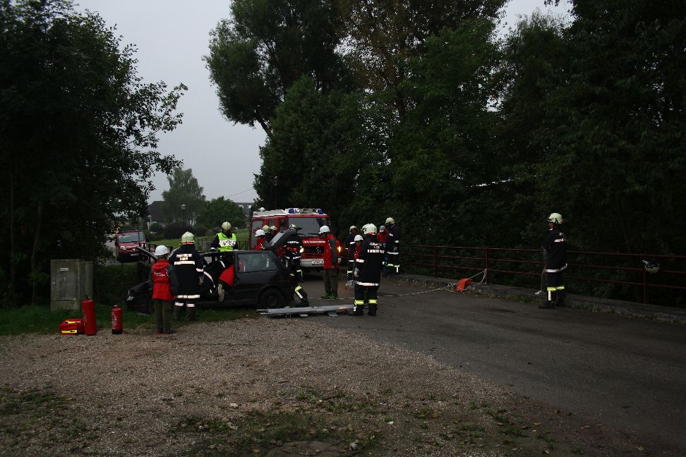 Das dabei erlernte, konnte abends bei einer Feuerwehrübung mit den aktiven Kameraden umgesetzt werden. Angenommen wurde bei dieser Übung ein Verkehrsunfall mit einer verletzten Person. Als Ersthelfer setzte ein Mitglied unserer Jugendgruppe den Notruf ab. Das Übungsszenario wurde anschließend gemeinsam abgearbeitet.