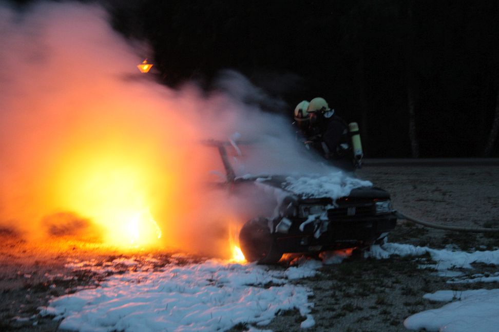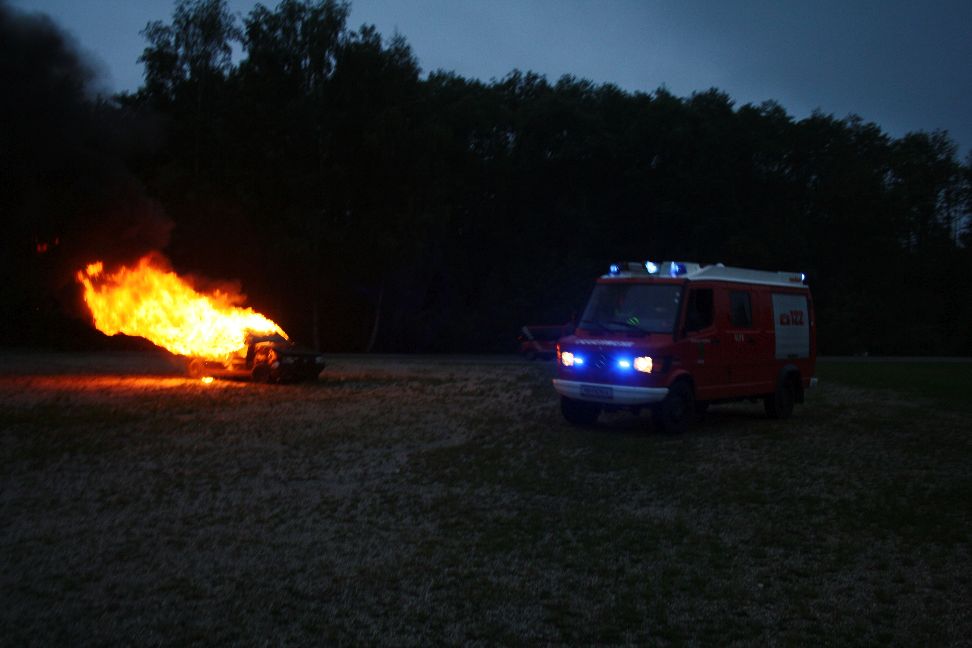 Im zweiten Teil dieser Übung wurde den Jugendlichen vorgeführt wie ein Fahrzeugbrand gelöscht wird.